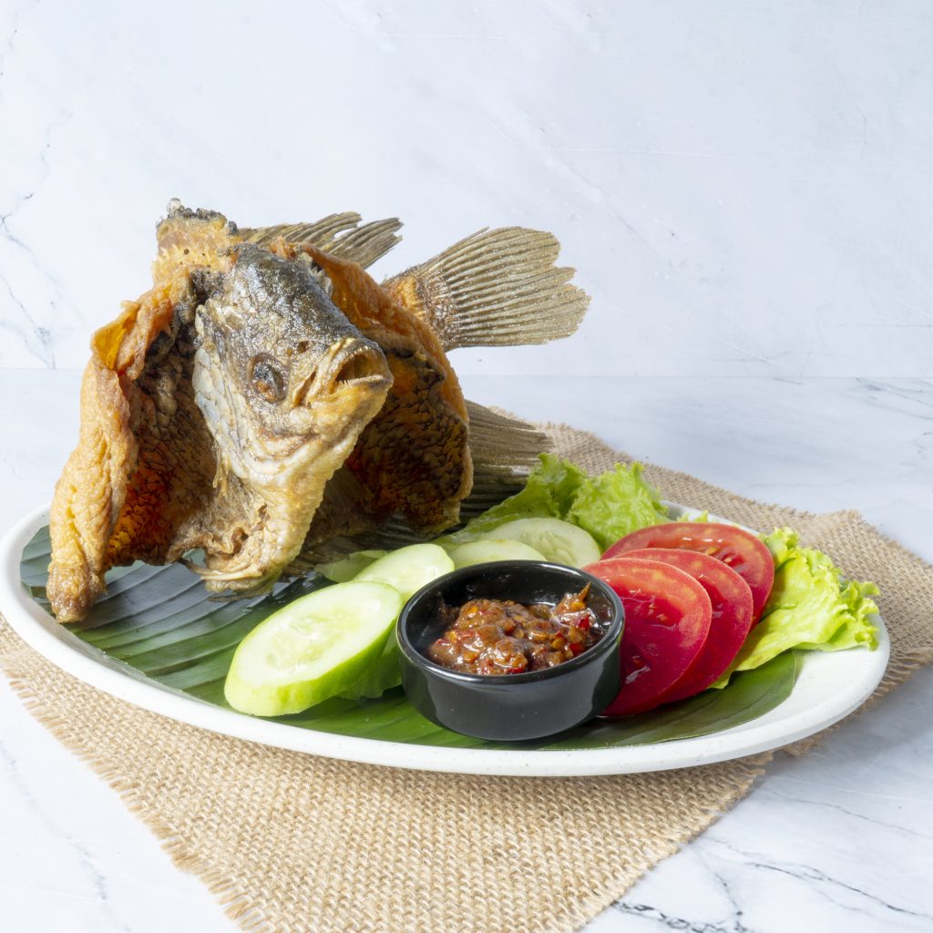 Clean and score the gurame fish. Rub with lime juice and salt, then rest for 15 minutes.