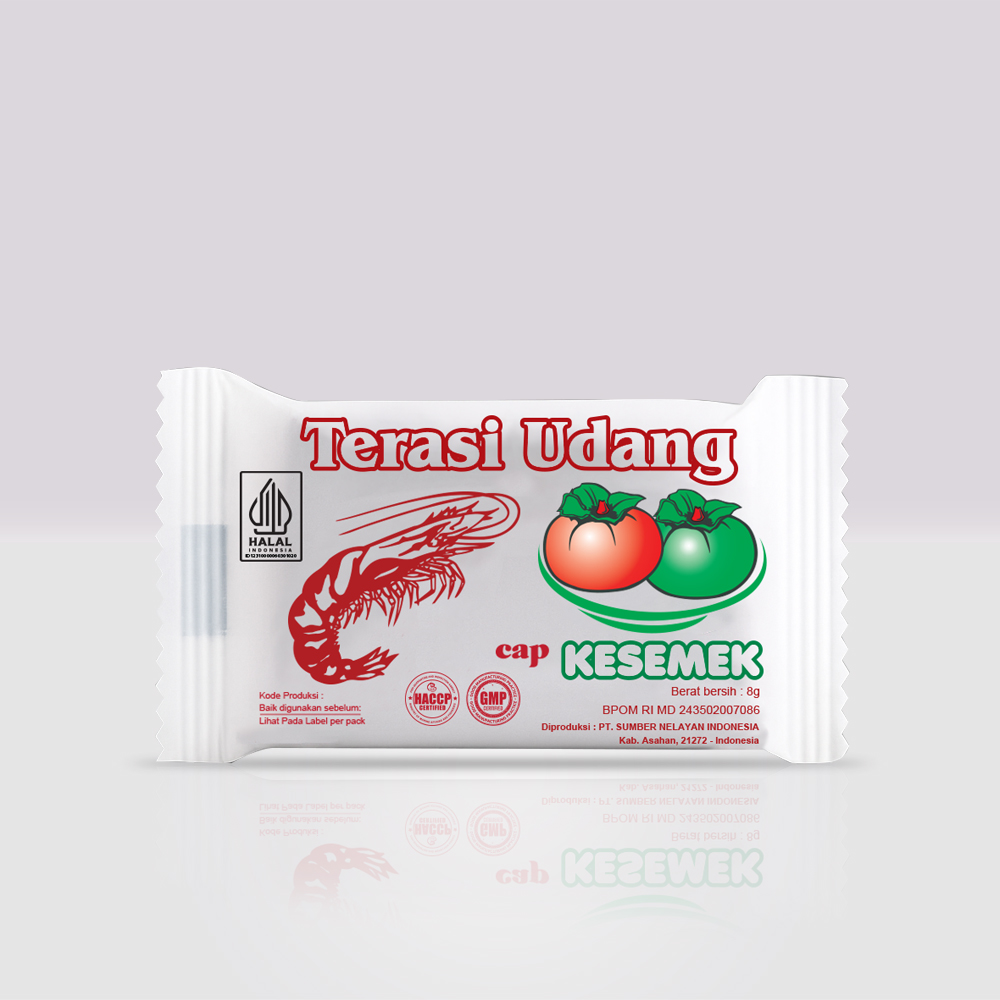 The legendary terasi udang Cap Kesemek now comes in a convenient 8-gram package, bringing you the distinctive flavors of Indonesian cuisine. Developed from a traditional recipe with strict quality control, the shrimp paste boasts the aroma and savory flavor of authentic udang rebon.